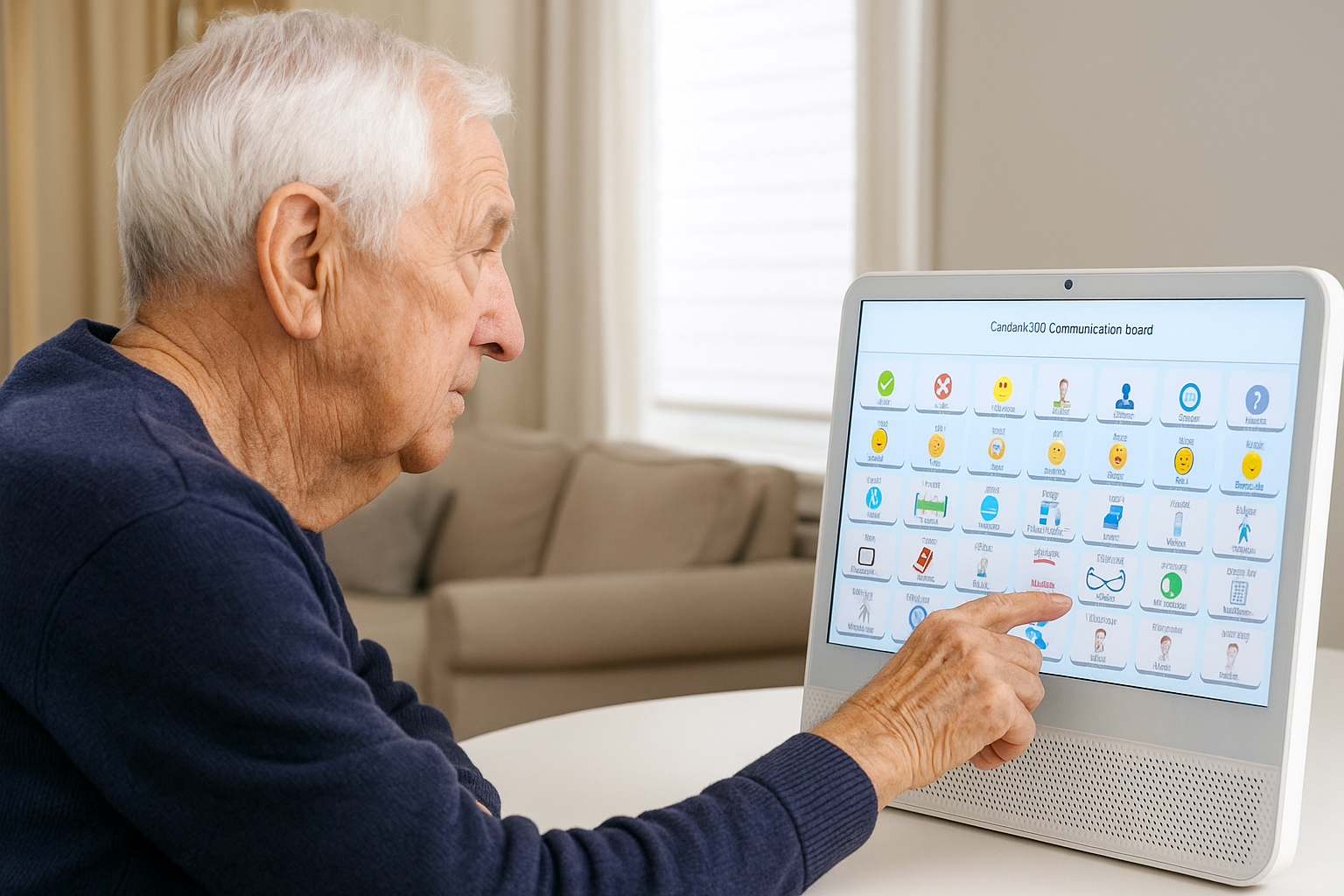 Seniors can use visual icons and touch commands to express needs or feelings — like “I need water,” “I’m happy,” or “I feel worried.” This reduces frustration for those who may struggle to find words and helps caregivers respond quickly and compassionately.